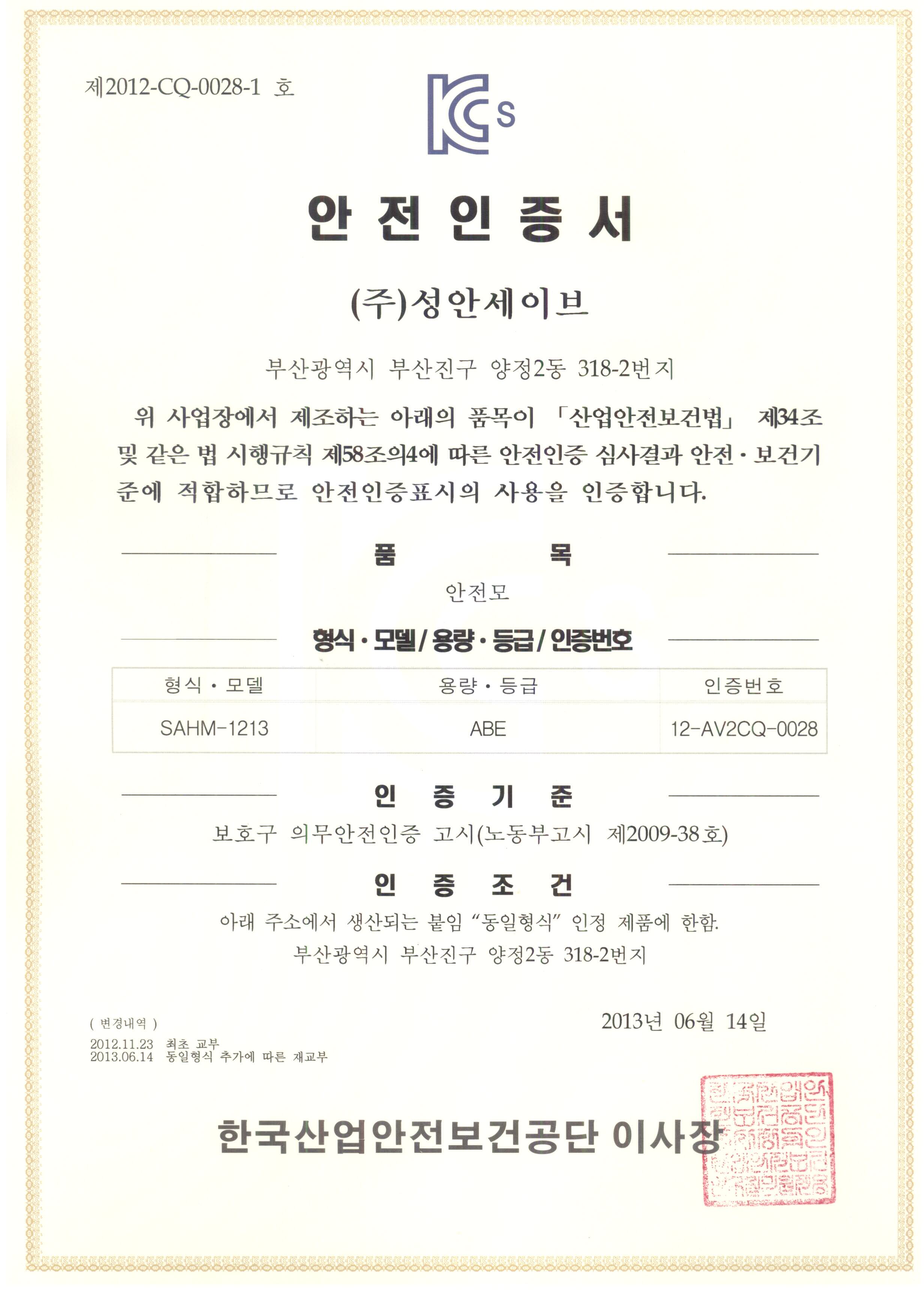 안전모 인증서