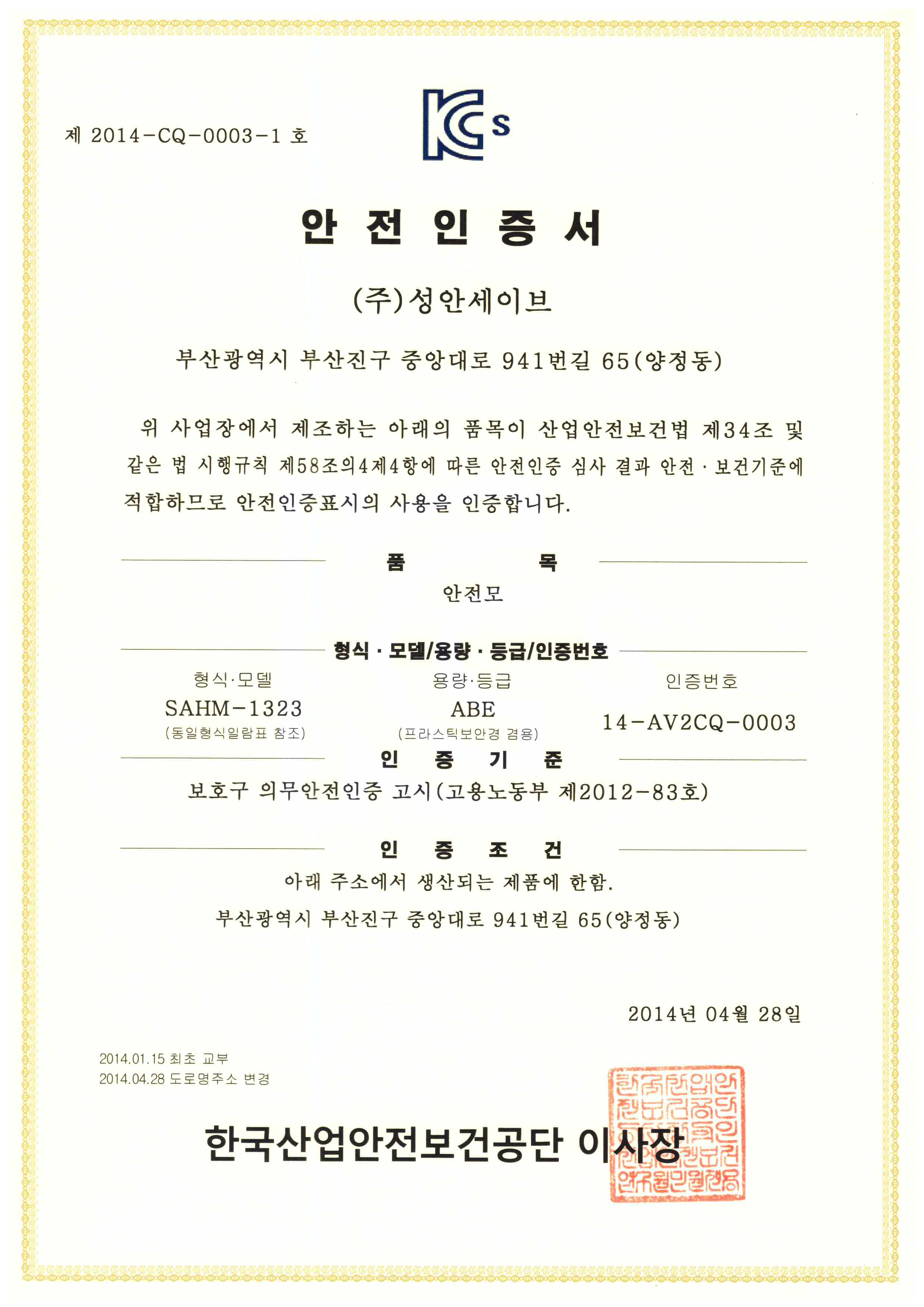 안전모 인증서